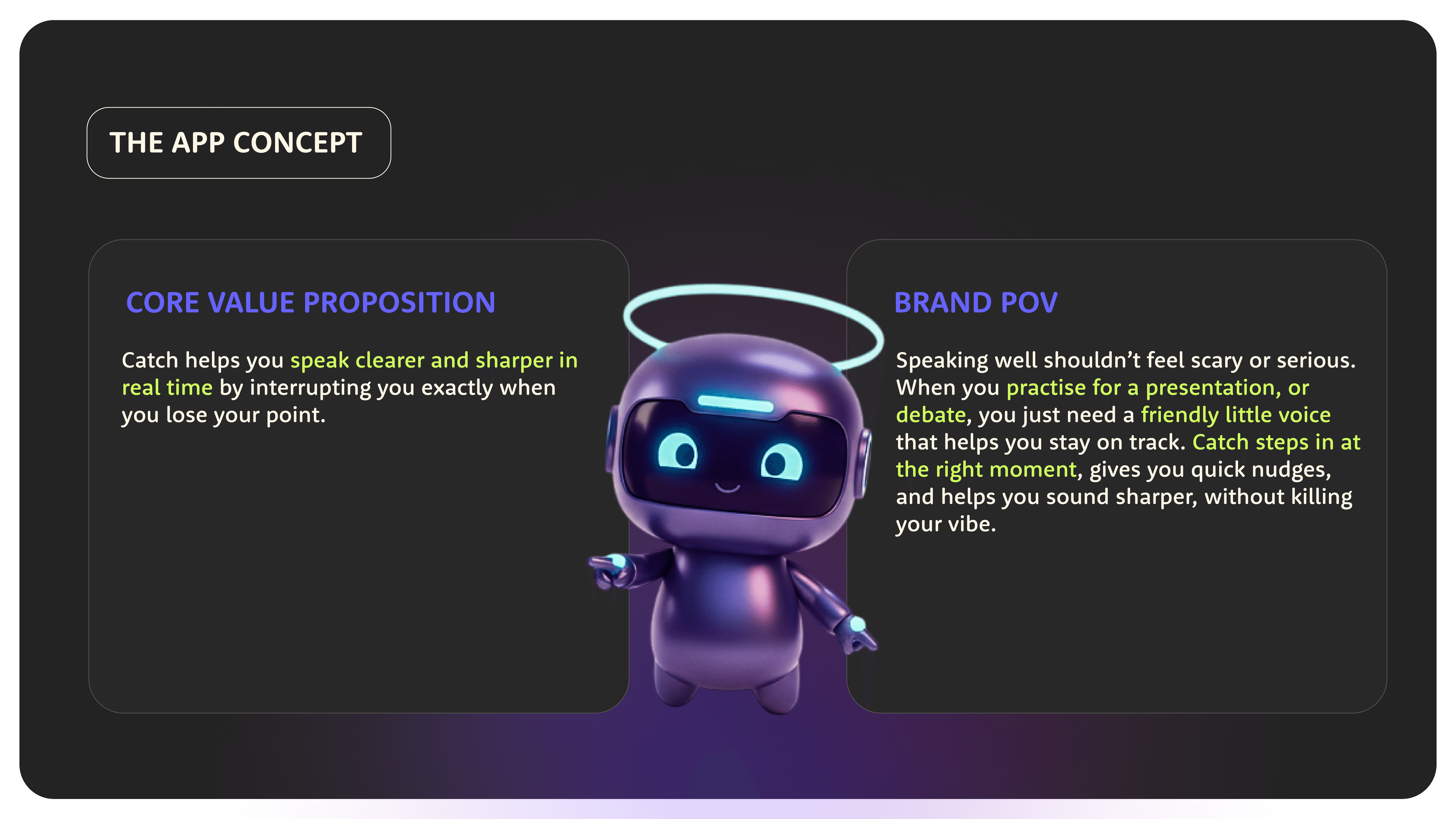 People struggle when they try to speak clearly, especially while recording voice notes, pitching ideas, or practising presentations. In real moments, they start strong but then ramble, lose their point, repeat themselves, or get stuck saying “umm, wait…” and have to restart again and again. This leads to wasted time, frustration, and low confidence. For example, someone trying to record a project explanation might go: “So my idea is about… actually, let me start again… okay wait…” until they get annoyed and give up.