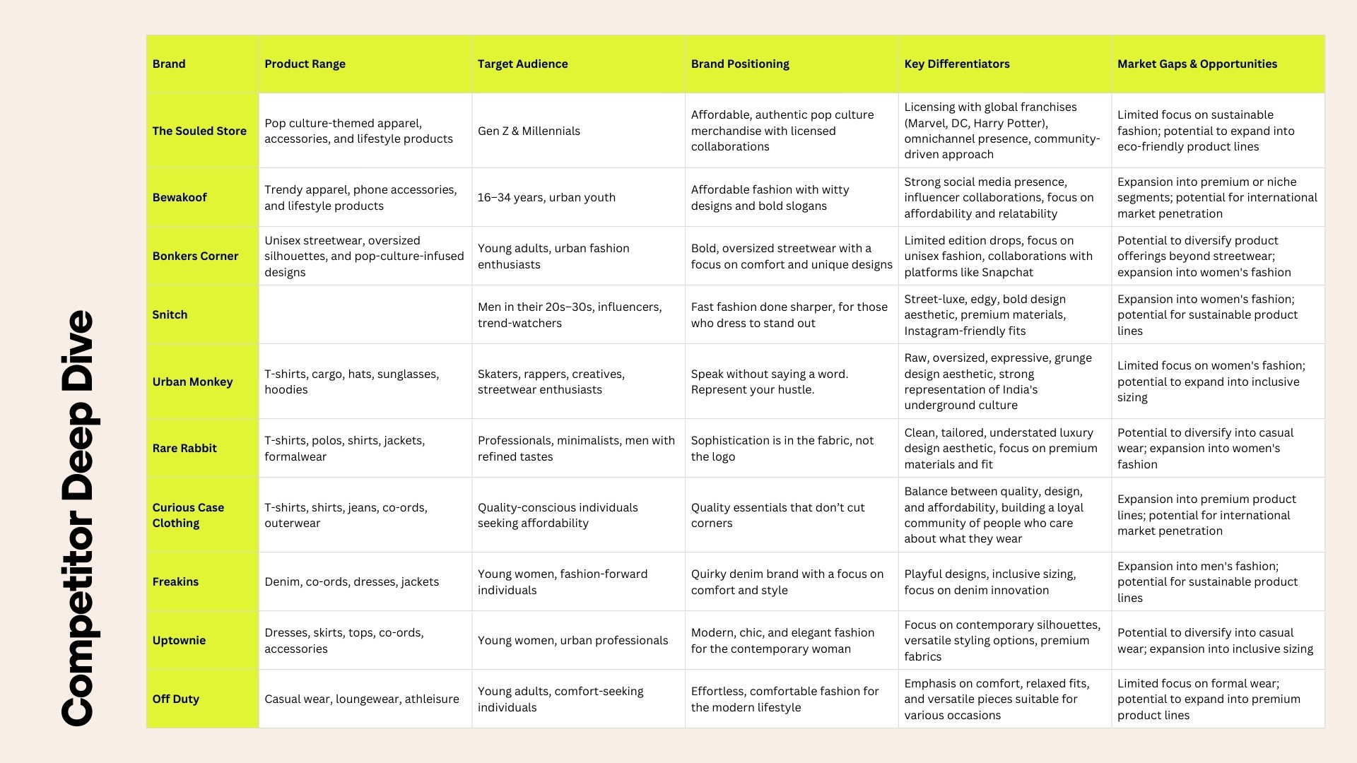 Fast-fashion for young Indians is crowded with generic, trend-driven graphics that lack emotional connection. While 18–25-year-olds strongly relate to childhood cartoons and today’s music culture, fashion rarely brings these influences together. There was a gap for an affordable brand that lets young adults express both nostalgia and their modern music-led lifestyle through everyday wear.